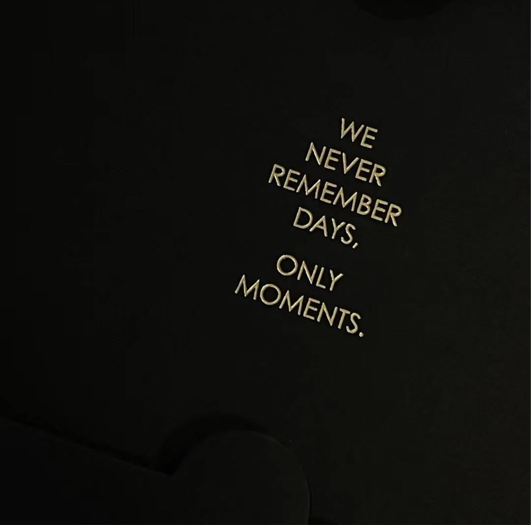 WE NEVER REMEMBER DAYS ONLY MOMENTS